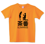仲間内でお誕生日のサプライズを"茶番"と呼び始めたのは三年くらい前のことです。お祝いする方もされる方もドキドキわくわくを楽しみに集まる。驚かされるのを分かってて行くという「予定調和」と「素人の下手な芝居」を絡めたことからついたネーミングです。左のTシャツは手作りです。仲間以外の一般のお客様にも気に入って何枚か買っていただいてます。