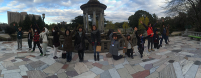 道中の鶴舞公園で撮った人文字の「HAPPY NEW YEAR」